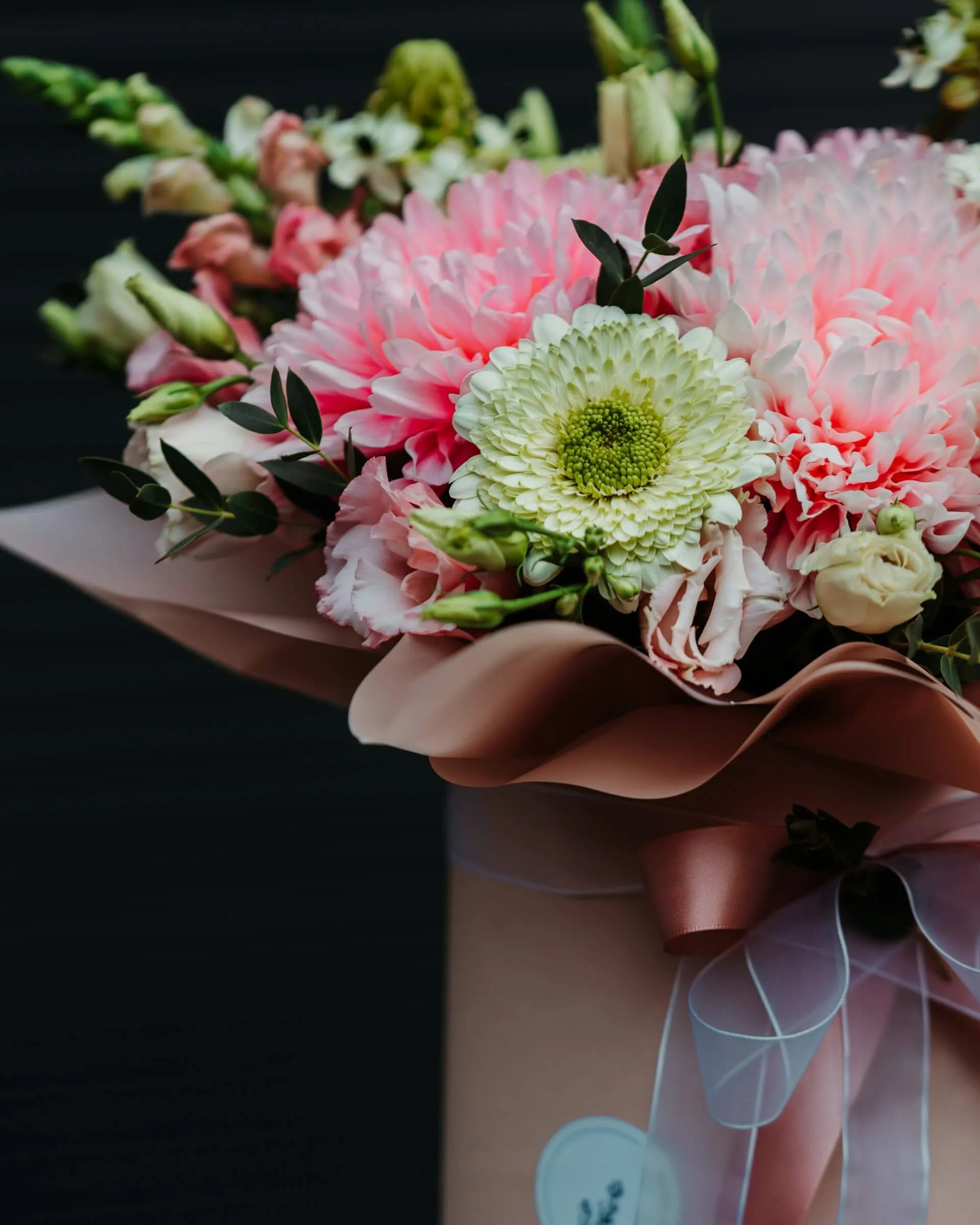 Хризантемы ценят за стойкость и разнообразие. Они сохраняют свежесть дольше большинства других цветов и при этом доступны в разных формах и оттенках. Благодаря этому флорист может использовать их как основу для букета или как выразительное дополнение в композиции.