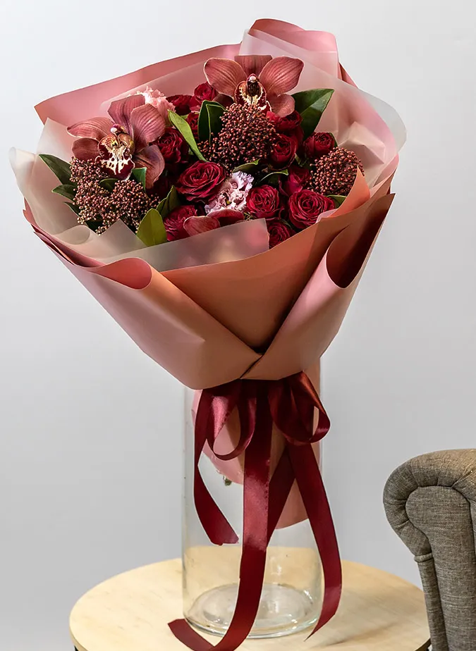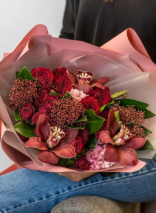 Живые цветы всегда уникальны, поэтому букет может немного отличаться от фото. При отсутствии какого-то сорта мы предложим его замену на другой, близкий по оттенку и равный по стоимости.