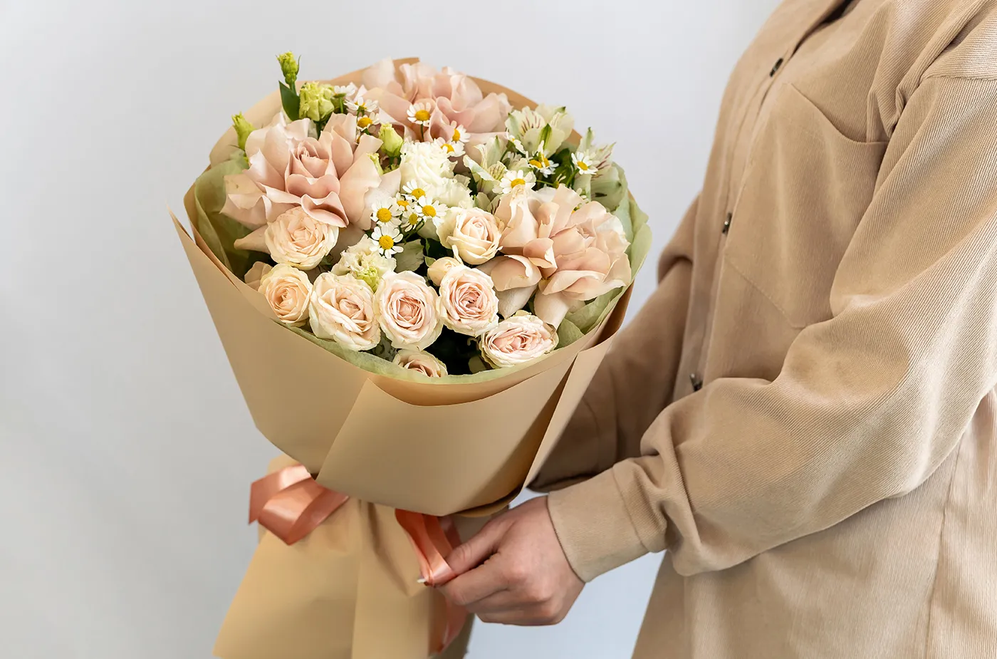 1. Заверните букет в бумагу: она защитит от ветра, холода, жары и солнечных лучей.