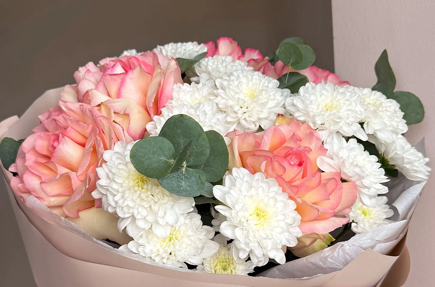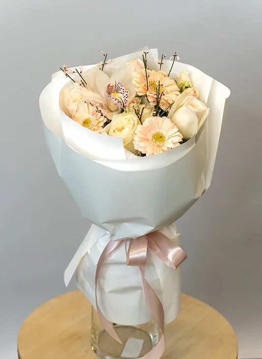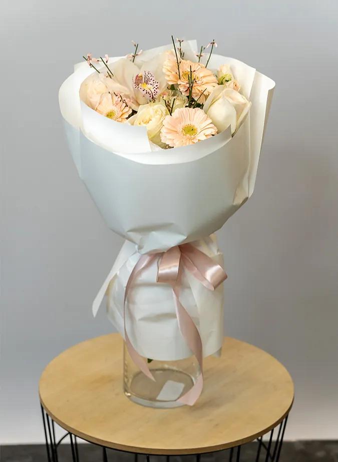Живые цветы всегда уникальны, поэтому букет может немного отличаться от фото. При отсутствии какого-то сорта мы предложим его замену на другой, близкий по оттенку и равный по стоимости.