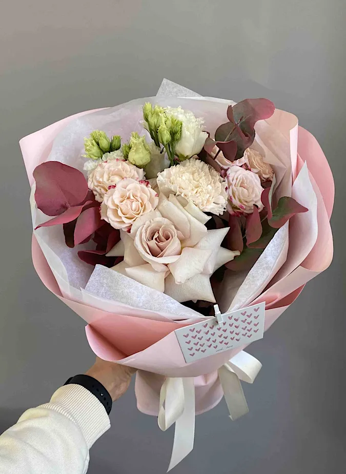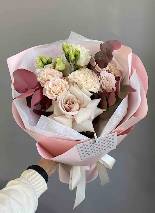 Состав: роза, эвкалипт, кустовая роза, гвоздика