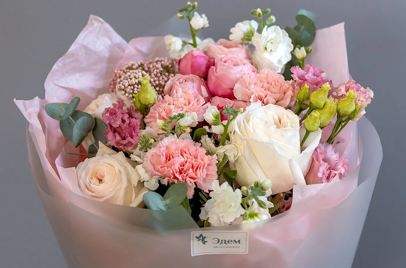 Живые цветы всегда уникальны, поэтому букет может немного отличаться от фото. При отсутствии какого-то сорта мы предложим его замену на другой, близкий по оттенку и равный по стоимости.