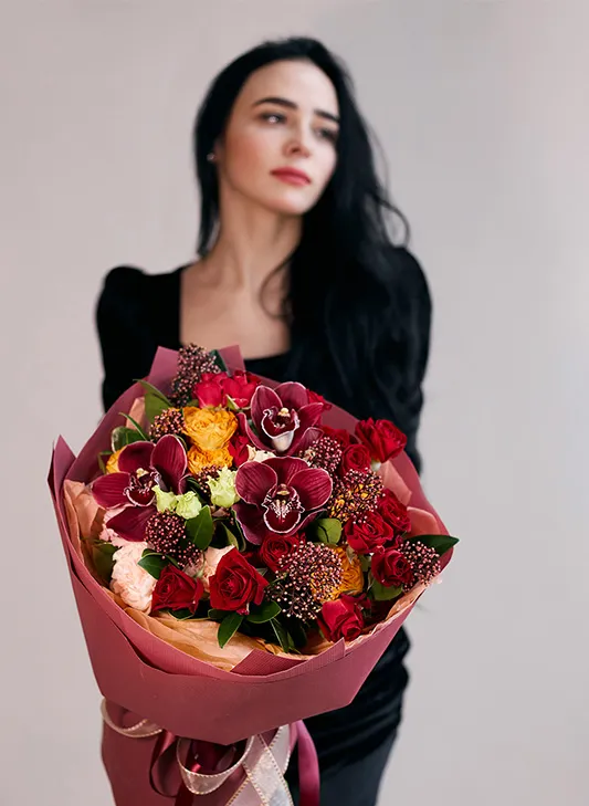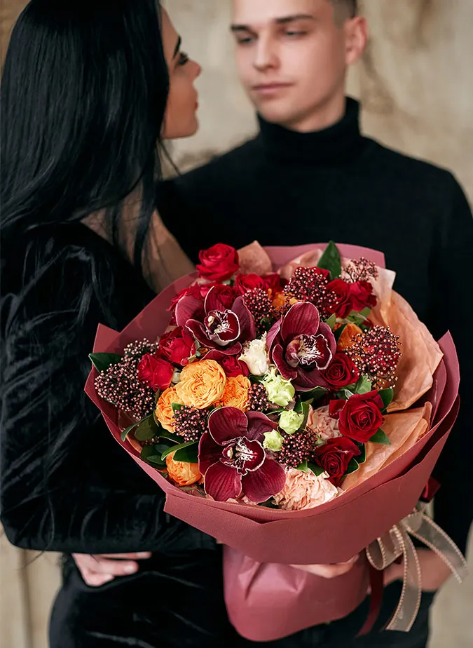 Живые цветы всегда уникальны, поэтому букет может немного отличаться от фото. При отсутствии какого-то сорта мы предложим его замену на другой, близкий по оттенку и равный по стоимости.