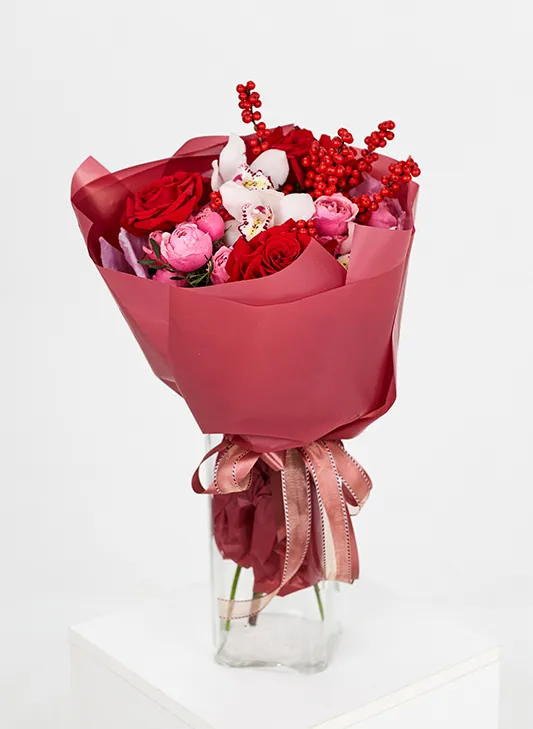 Состав: роза, роза кустовая, орхидея, писташ, илекс