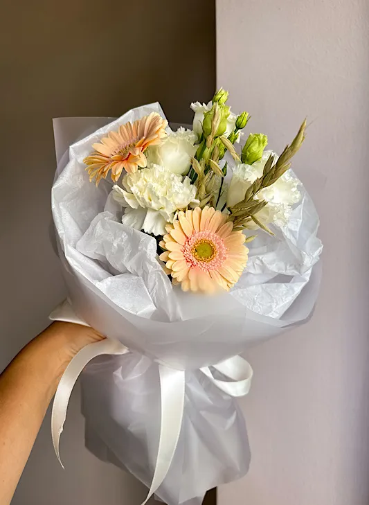 Живые цветы всегда уникальны, поэтому букет может немного отличаться от фото. При отсутствии какого-то сорта мы предложим его замену на другой, близкий по оттенку и равный по стоимости.