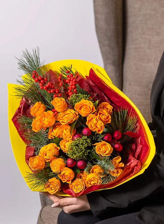 Состав: роза кустовая,илекс,нобилис,пинус,скиммия