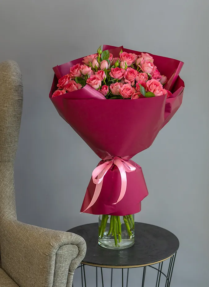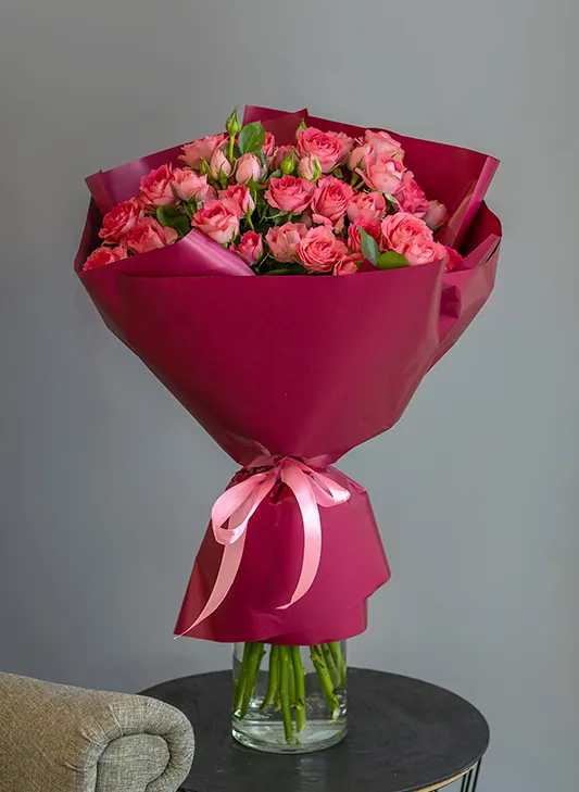 Живые цветы всегда уникальны, поэтому букет может немного отличаться от фото. При отсутствии какого-то сорта мы предложим его замену на другой, близкий по оттенку и равный по стоимости.