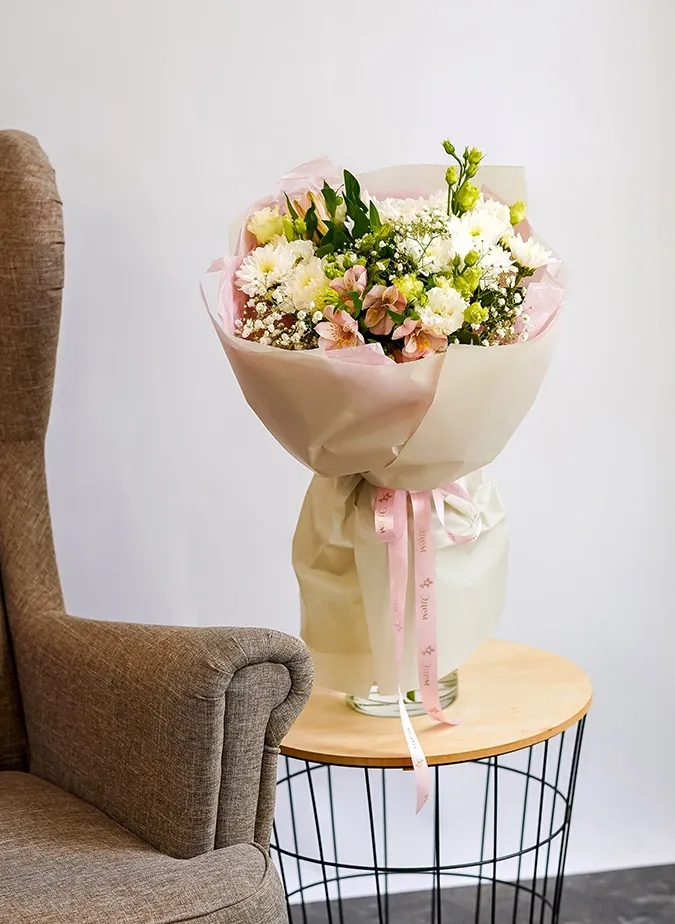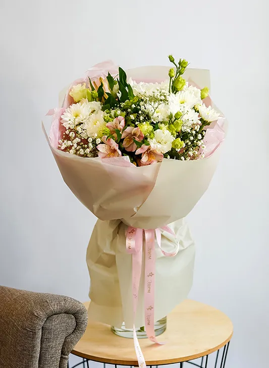 Состав: альстромерия,гипсофила, хризантема, эустома