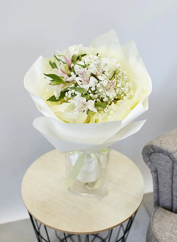 1. Заверните букет в бумагу: она защитит от ветра, холода, жары и солнечных лучей.