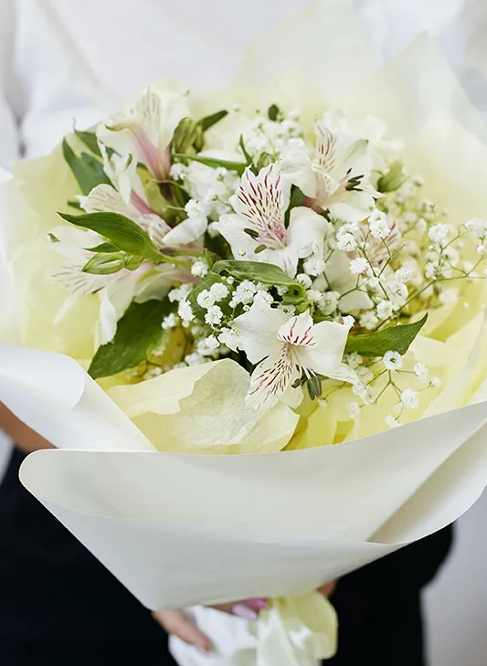 Живые цветы всегда уникальны, поэтому букет может немного отличаться от фото. При отсутствии какого-то сорта мы предложим его замену на другой, близкий по оттенку и равный по стоимости.