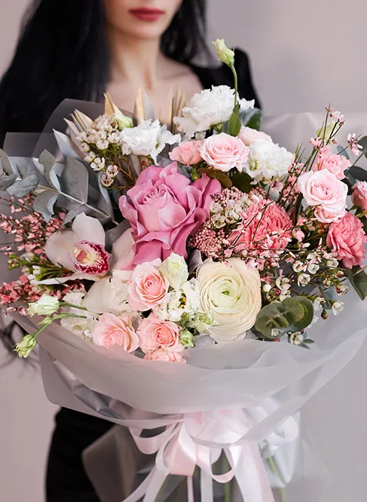 Живые цветы всегда уникальны, поэтому букет может немного отличаться от фото. При отсутствии какого-то сорта мы предложим его замену на другой, близкий по оттенку и равный по стоимости.