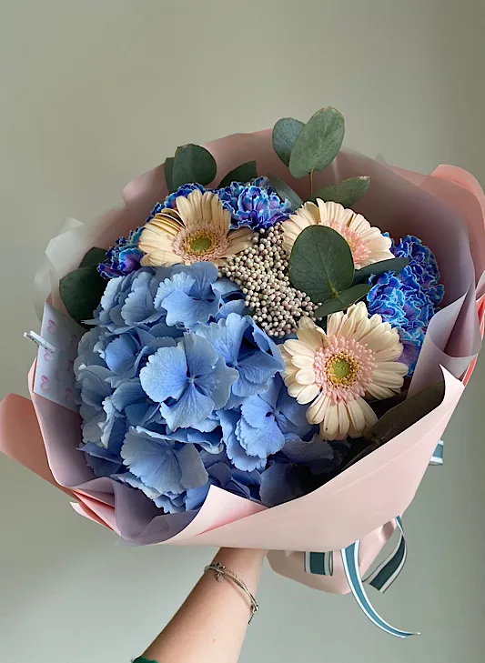 Состав: гортензия, гвоздика, гербера, озотамнус