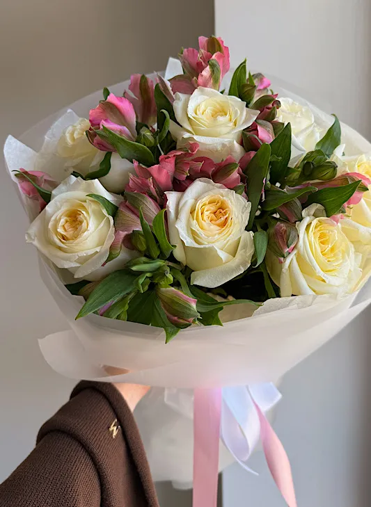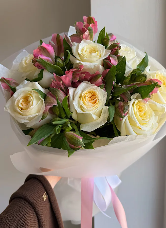 Живые цветы всегда уникальны, поэтому букет может немного отличаться от фото. При отсутствии какого-то сорта мы предложим его замену на другой, близкий по оттенку и равный по стоимости.