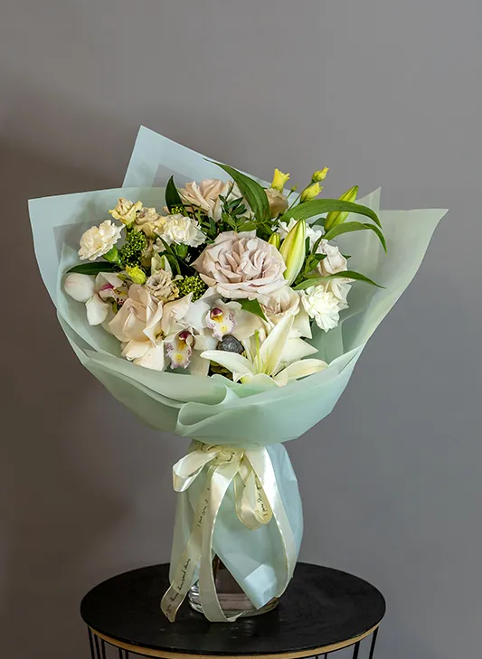 Состав: лилия,орхидея,роза,эустома,скиммия,гвоздика