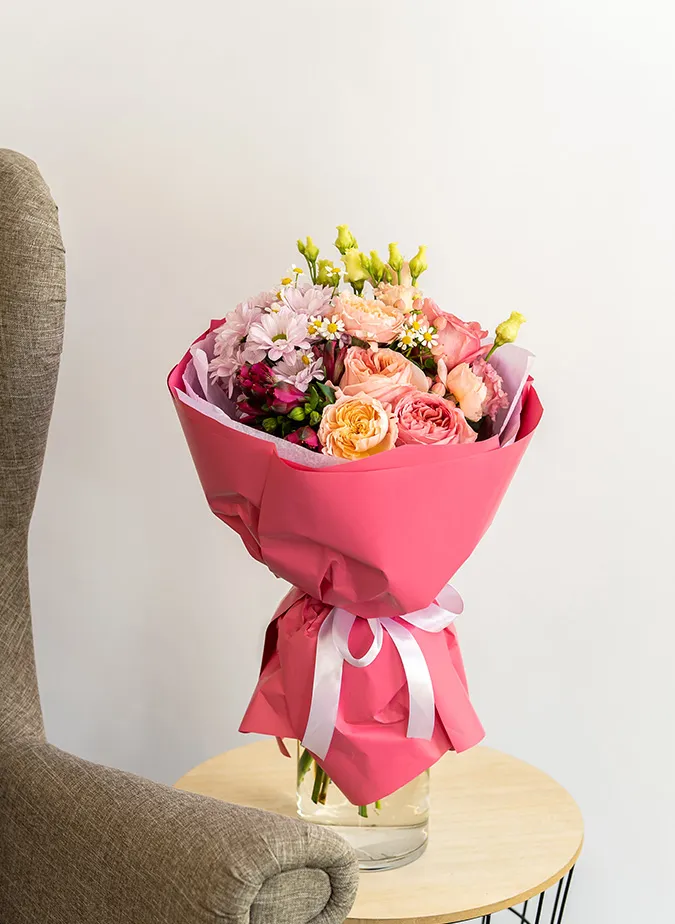 Живые цветы всегда уникальны, поэтому букет может немного отличаться от фото. При отсутствии какого-то сорта мы предложим его замену на другой, близкий по оттенку и равный по стоимости.