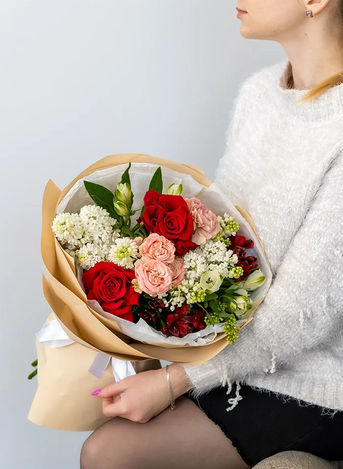 Живые цветы всегда уникальны, поэтому букет может немного отличаться от фото. При отсутствии какого-то сорта мы предложим его замену на другой, близкий по оттенку и равный по стоимости.