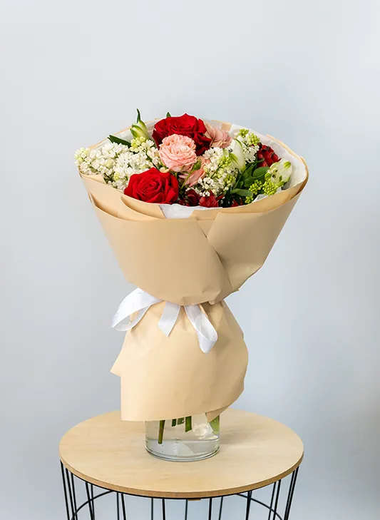 1. Заверните букет в бумагу: она защитит от ветра, холода, жары и солнечных лучей.