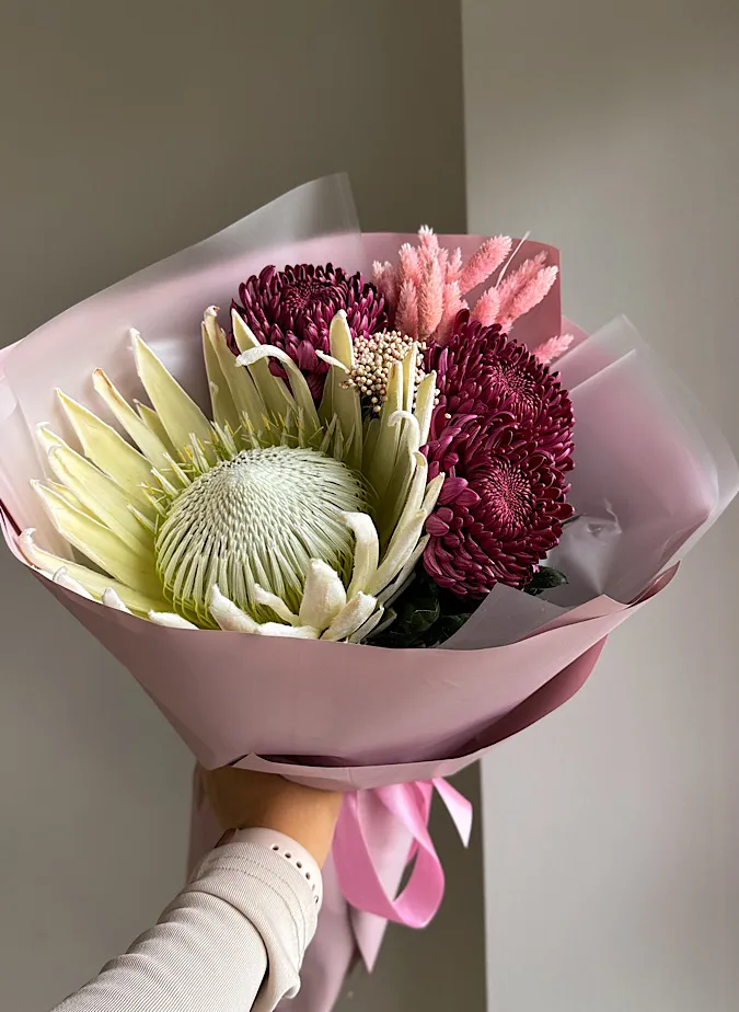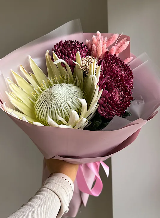Живые цветы всегда уникальны, поэтому букет может немного отличаться от фото. При отсутствии какого-то сорта мы предложим его замену на другой, близкий по оттенку и равный по стоимости.