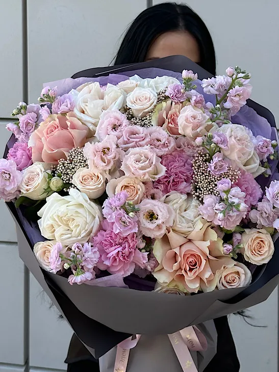 Живые цветы всегда уникальны, поэтому букет может немного отличаться от фото. При отсутствии какого-то сорта мы предложим его замену на другой, близкий по оттенку и равный по стоимости.