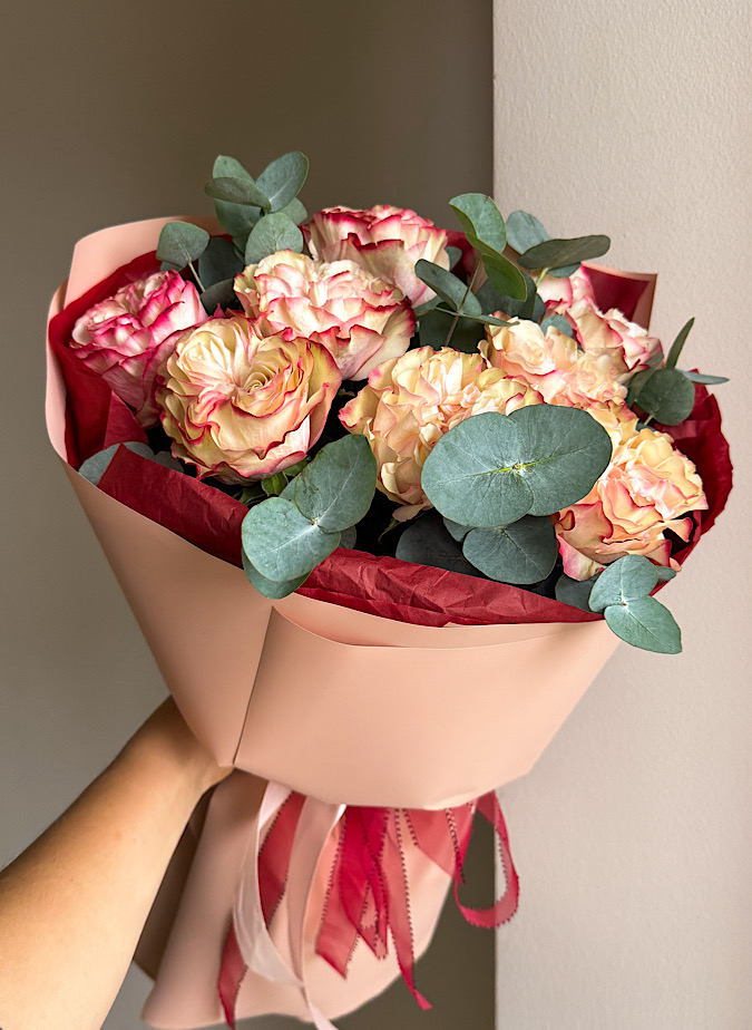Живые цветы всегда уникальны, поэтому букет может немного отличаться от фото. При отсутствии какого-то сорта мы предложим его замену на другой, близкий по оттенку и равный по стоимости.