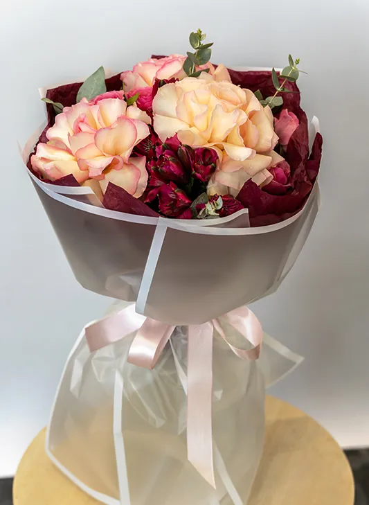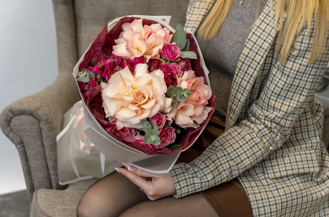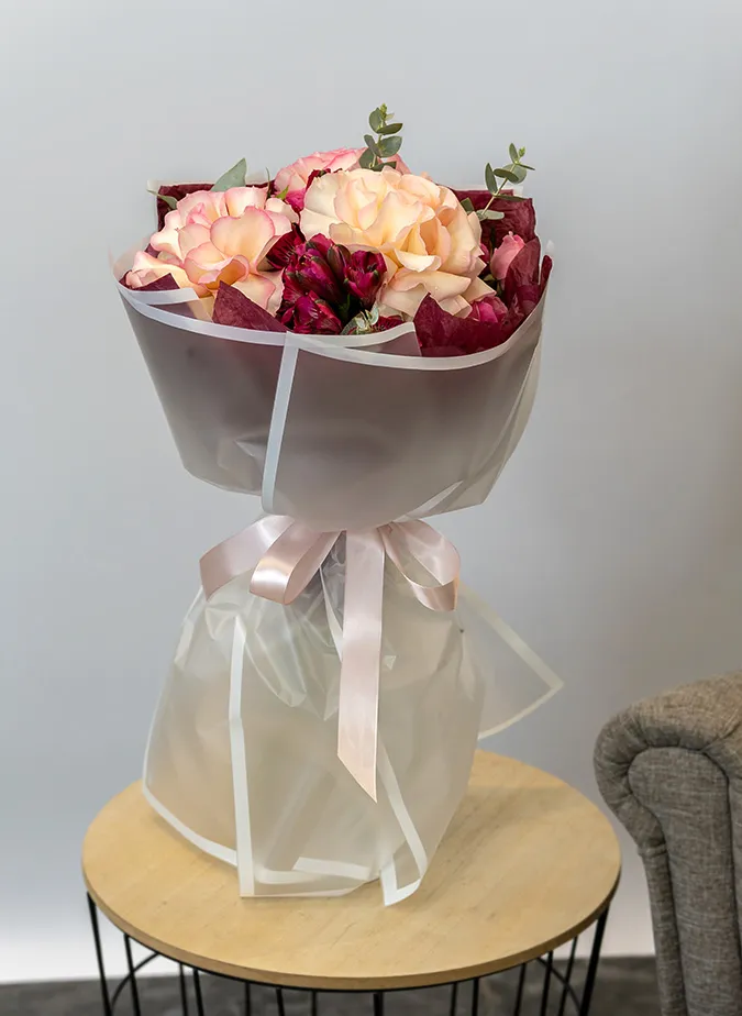 Состав: роза кустовая, эвкалипт, альстромерия, роза