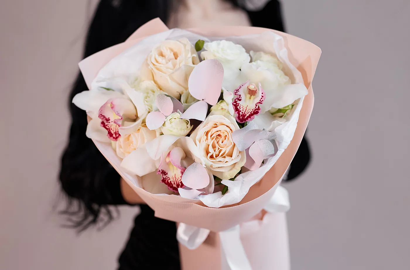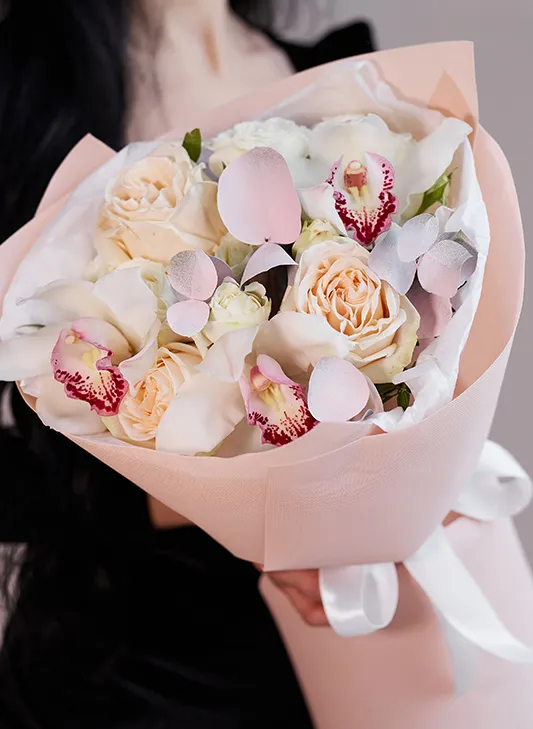 Живые цветы всегда уникальны, поэтому букет может немного отличаться от фото. При отсутствии какого-то сорта мы предложим его замену на другой, близкий по оттенку и равный по стоимости.