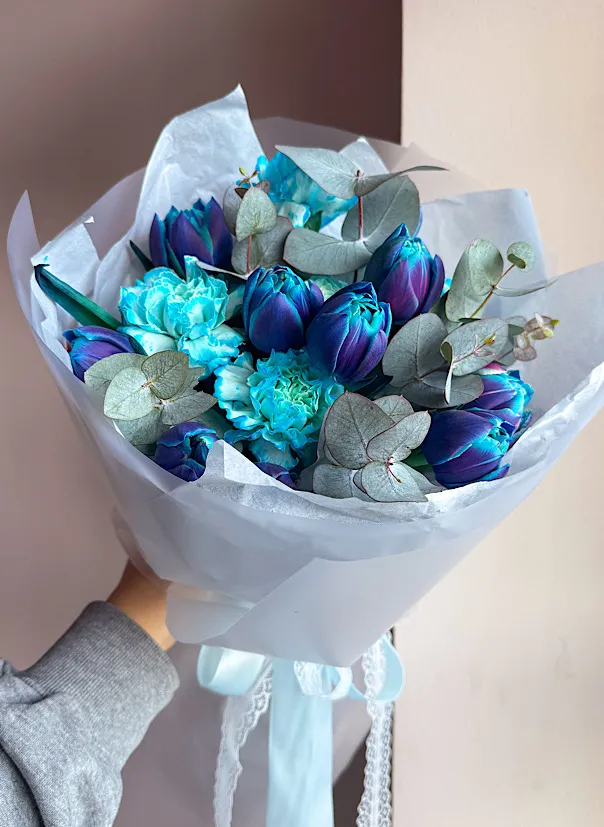 Букет из синих тюльпанов "Ты мой космос"