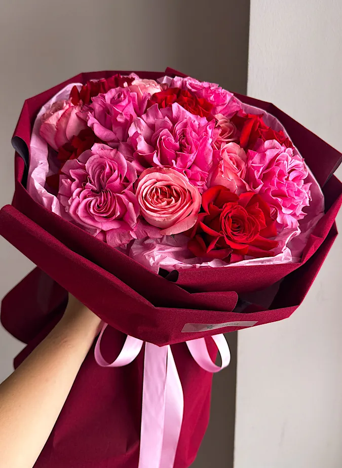 Живые цветы всегда уникальны, поэтому букет может немного отличаться от фото. При отсутствии какого-то сорта мы предложим его замену на другой, близкий по оттенку и равный по стоимости.