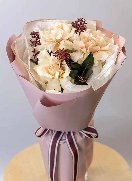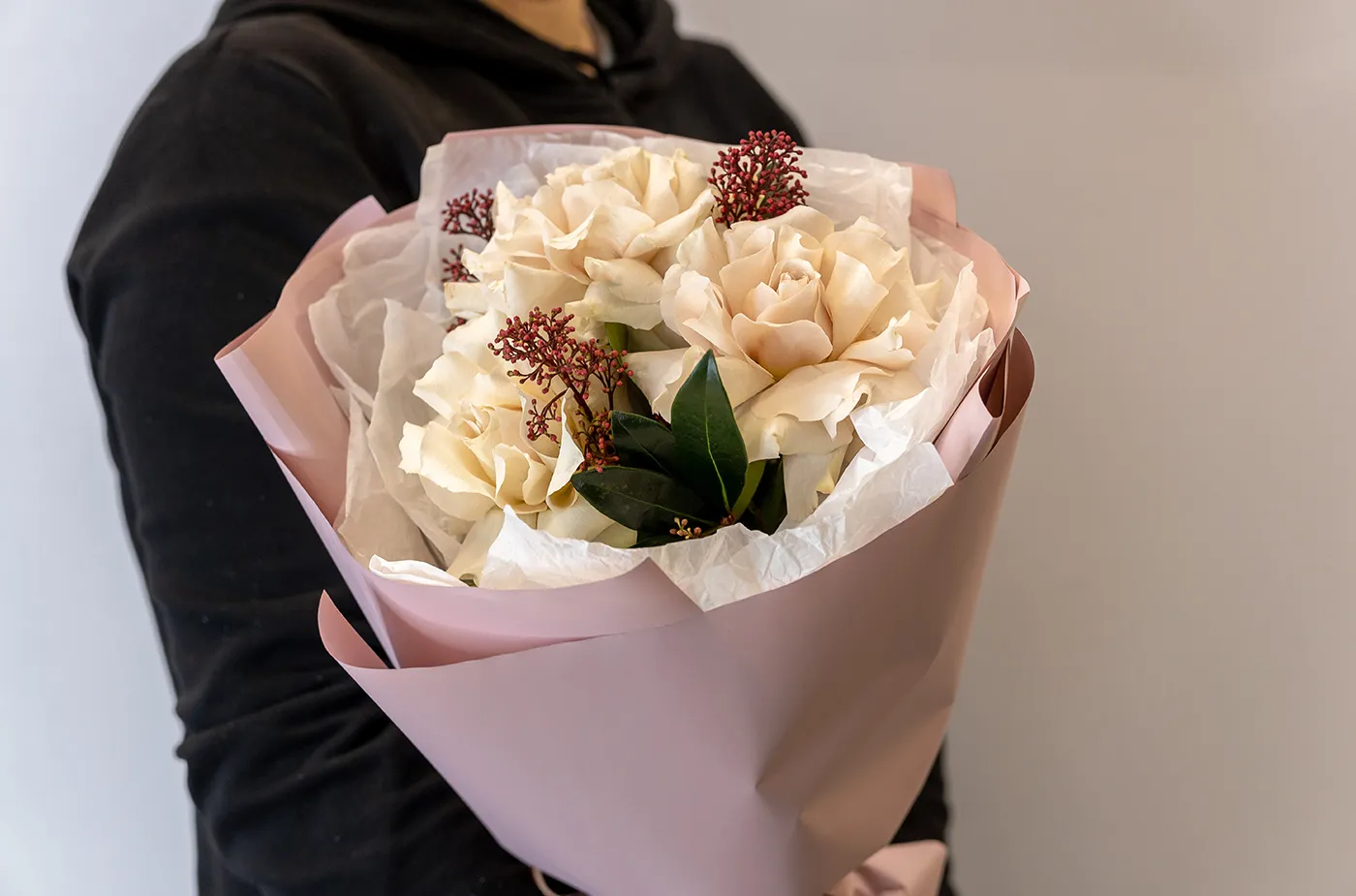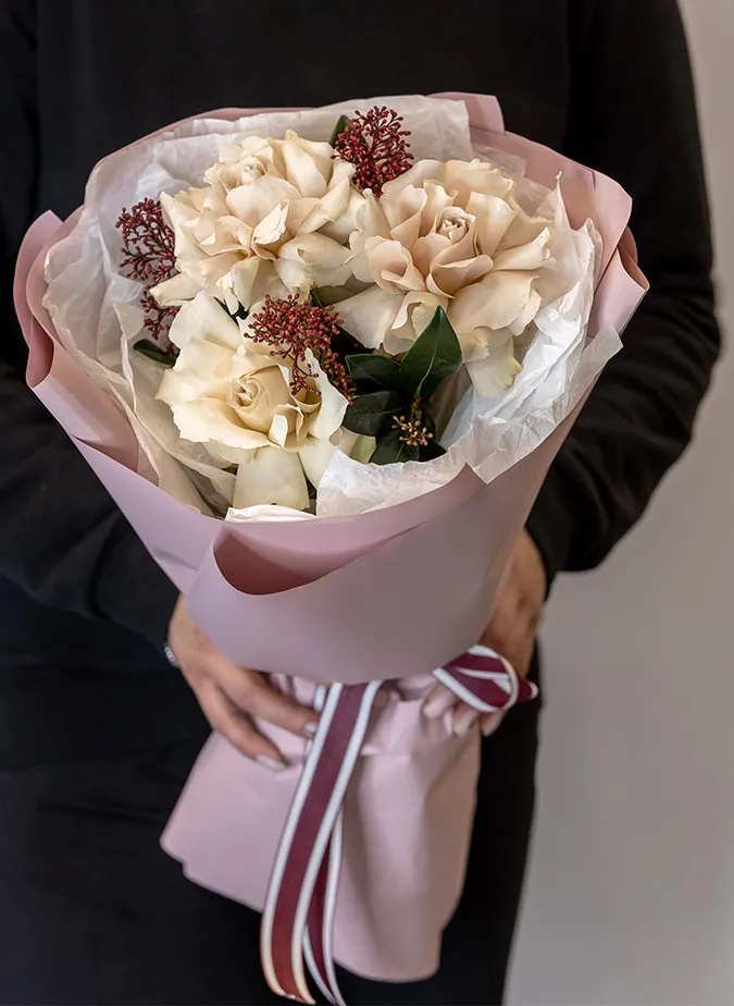 Живые цветы всегда уникальны, поэтому букет может немного отличаться от фото. При отсутствии какого-то сорта мы предложим его замену на другой, близкий по оттенку и равный по стоимости.