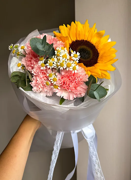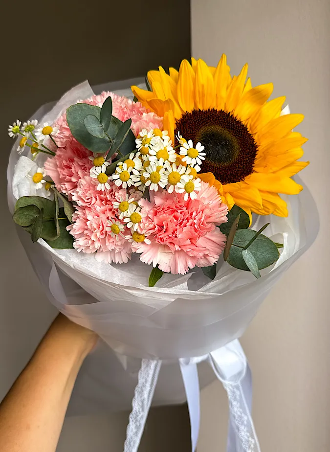 Состав: подсолнух, гвоздика, матрикария