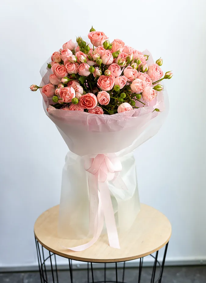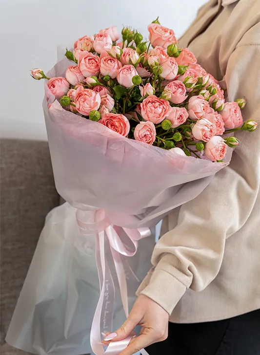 Живые цветы всегда уникальны, поэтому букет может немного отличаться от фото. При отсутствии какого-то сорта мы предложим его замену на другой, близкий по оттенку и равный по стоимости.