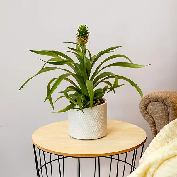 Комнатный декоративный Ананас - это уменьшенная (несъедобная) версия дикого ананаса. Выращивают их преимущественно ради листвы. Чашечка в форме воронки - идеальный контейнер для воды. А розетка из жестких заостренных листьев создает отличную систему каналов, по которой вся влага направляется к сердцу розетки.