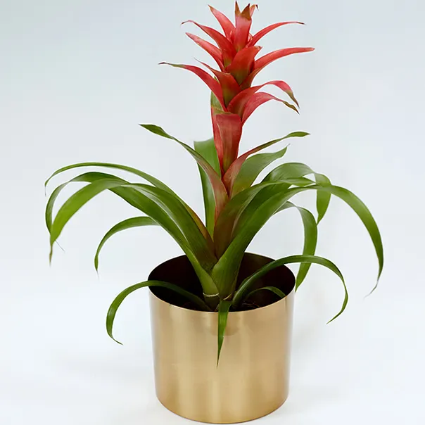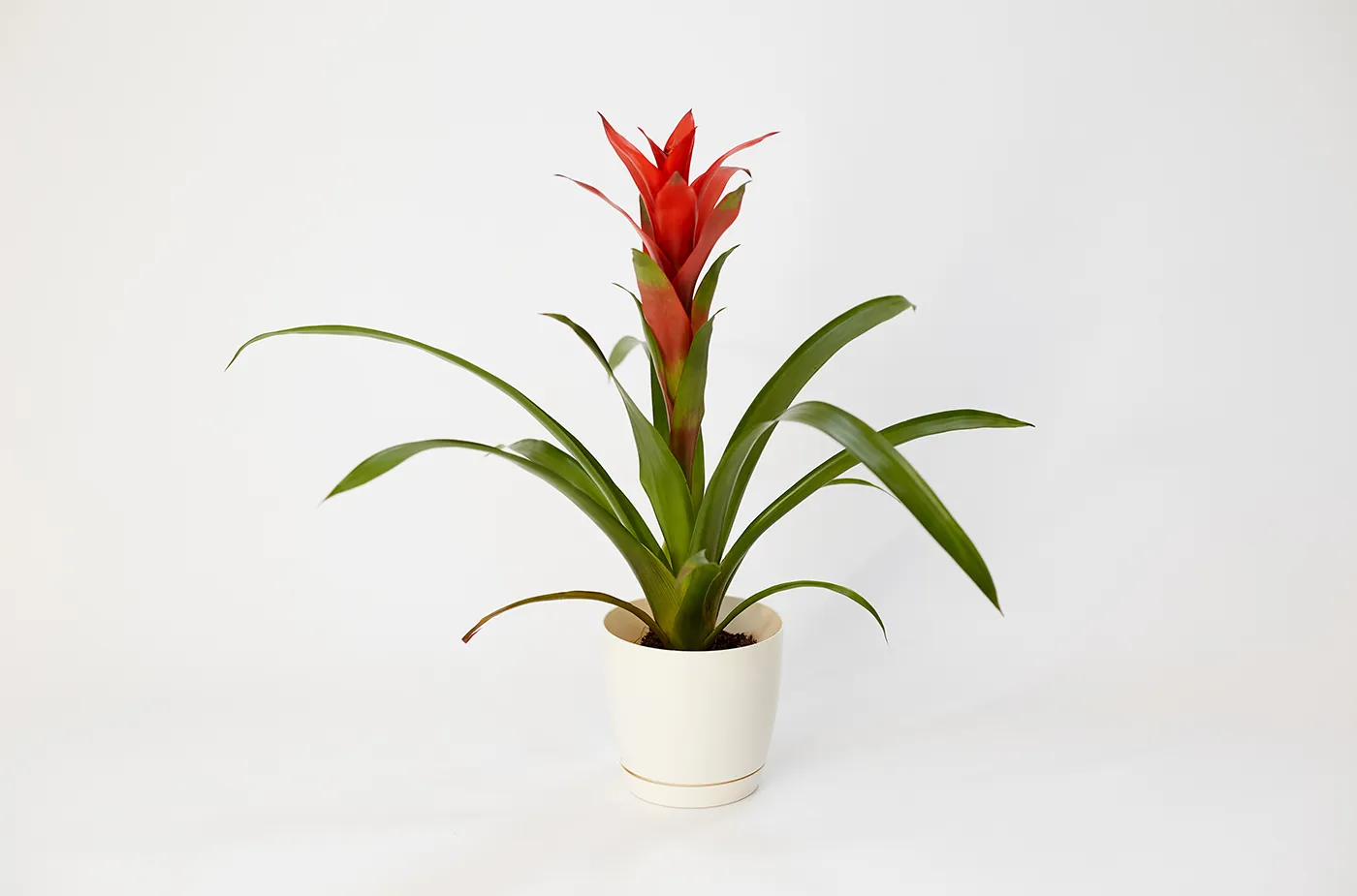 Гузмания — эффектное тропическое растение с удлиненными блестящими листьями, собранными в прикорневую розетку, из центра которой появляется необычное колосовидное соцветие, образованное яркоокрашенными листьями-прицветниками и расположенными между ними белыми или желтыми мелкими цветками. Соцветие радует глаз почти четыре месяца.