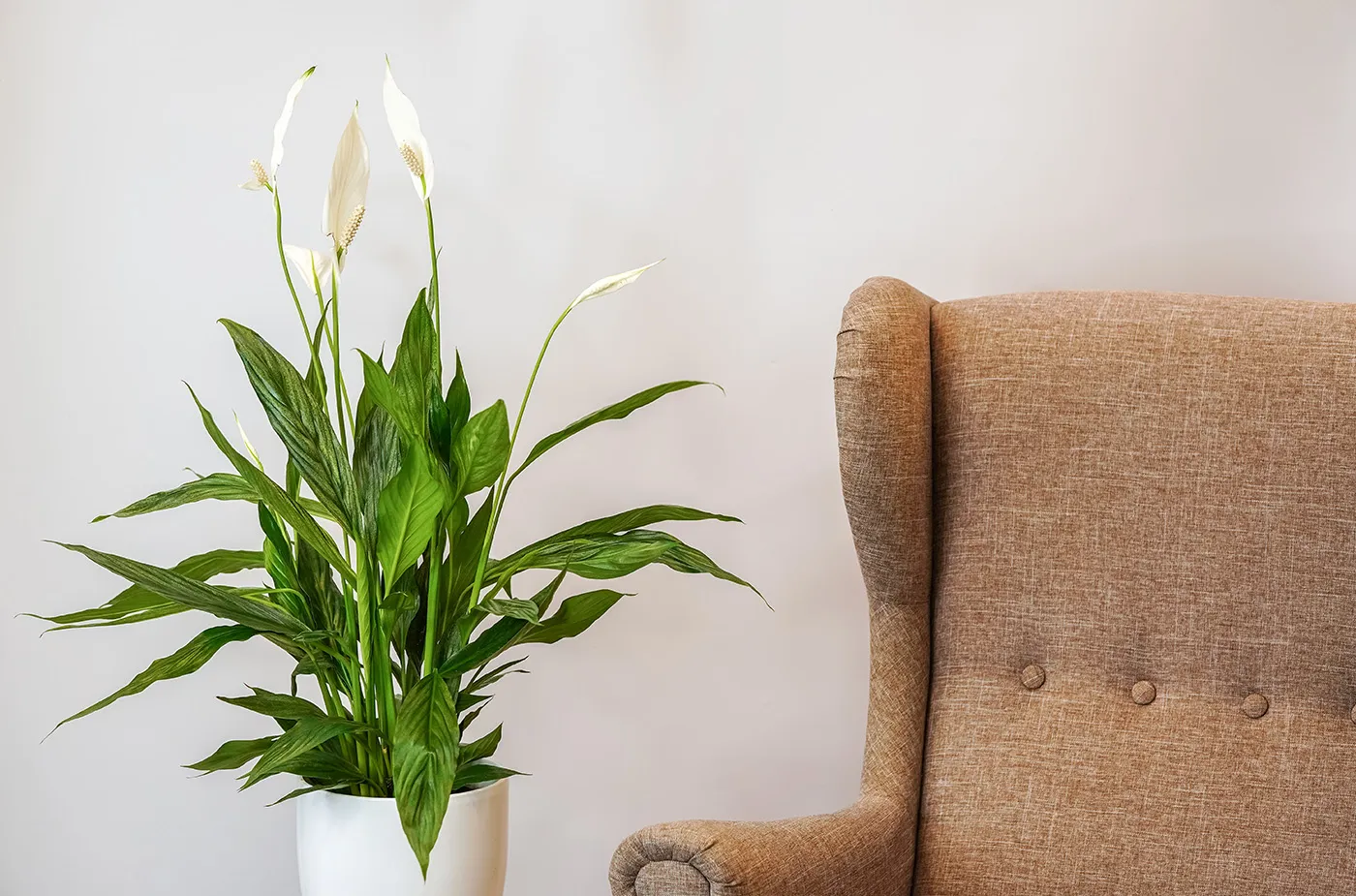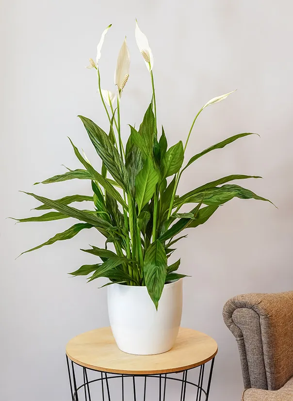 это многолетнее травянистое растение высотой до 30 см, хотя есть и более высокие и карликовые разновидности. Стебель отсутствует. Прикорневые удлинённо-ланцетные листья тёмно- зелёного цвета образуют пучок прямо из почвы. Считается, что спатифиллум насыщает воздух озоном, обладает мощной энергетикой, повышает работоспособность. Это растение рекомендуют использовать для озеленения детской комнаты, для оформления интерьеров офисных помещений.