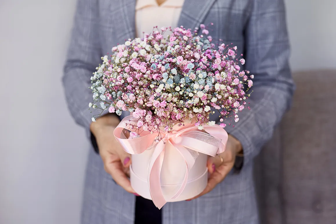 2. Подливайте немного воды раз в 2–3 дня. Аккуратно раздвиньте цветы и добавьте воды прямо на губку-оазис, в которой они держатся. При этом не намочите коробку.