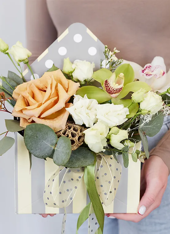 Композиции создаём под заказ именно для вас, чтобы цветы были свежими и держались дольше.