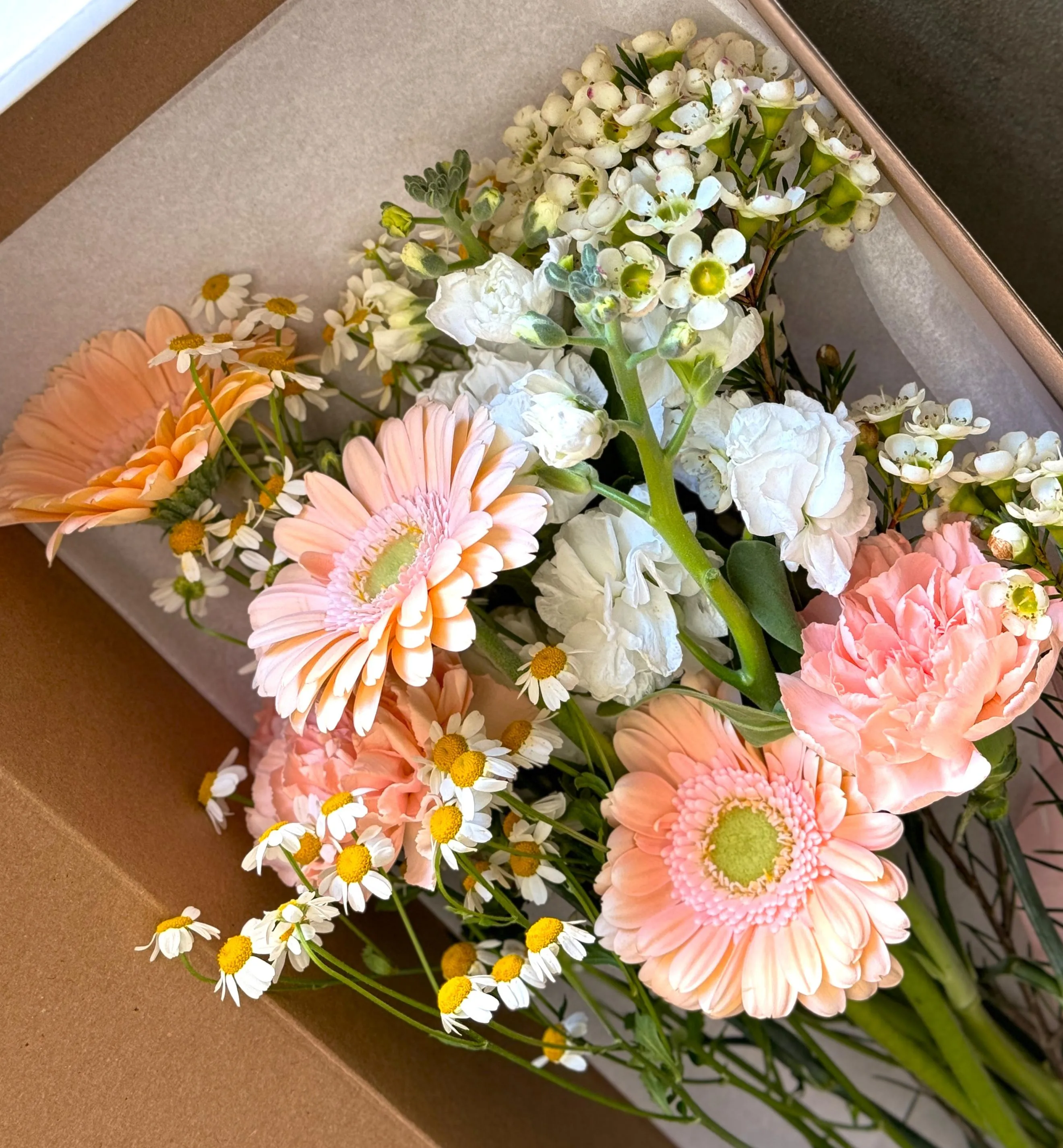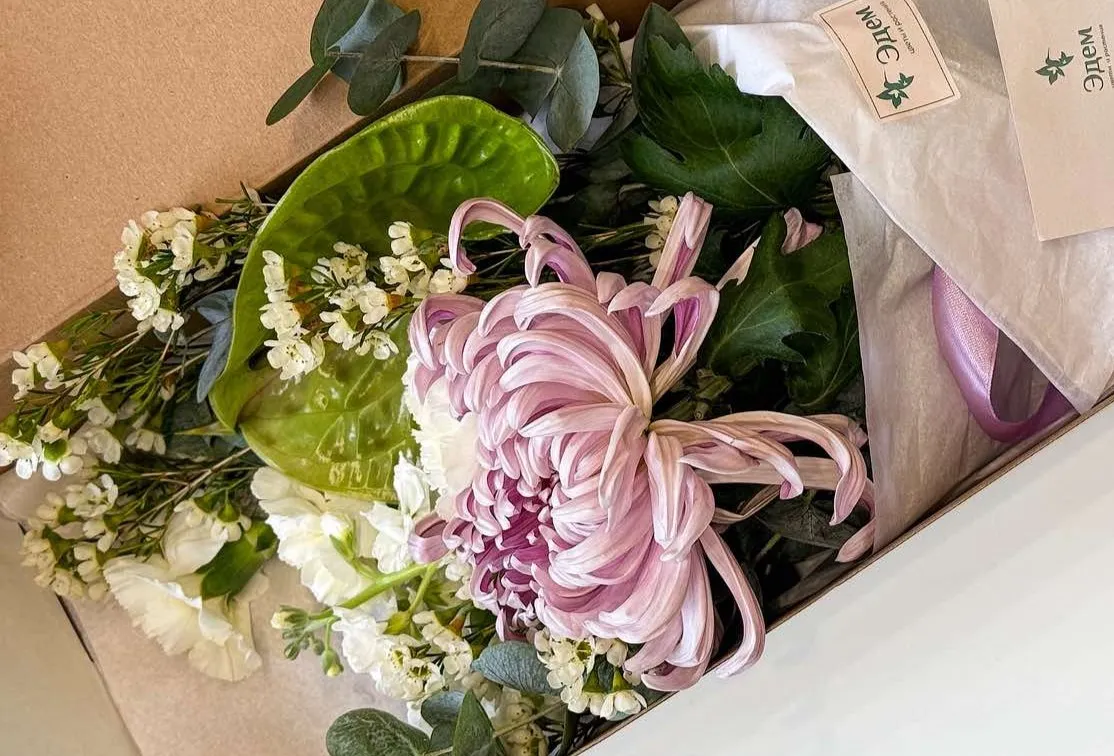В коробке вы найдёте свежие цветы, аккуратно упакованные для сохранности, кризал и инструкцию по сборке — всё, что нужно, чтобы создать букет в своём ритме. Это не просто флористика, а практика внимательности: почувствуйте текстуры, вдыхайте ароматы, дайте волю интуиции.