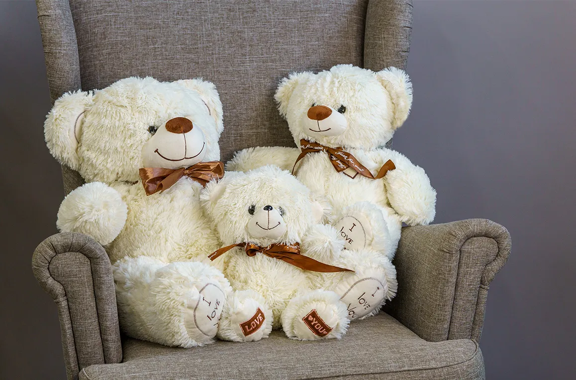 Когда достанете мишку из упаковки, встряхните и расправьте его, чтобы игрушка приняла надлежащую форму.